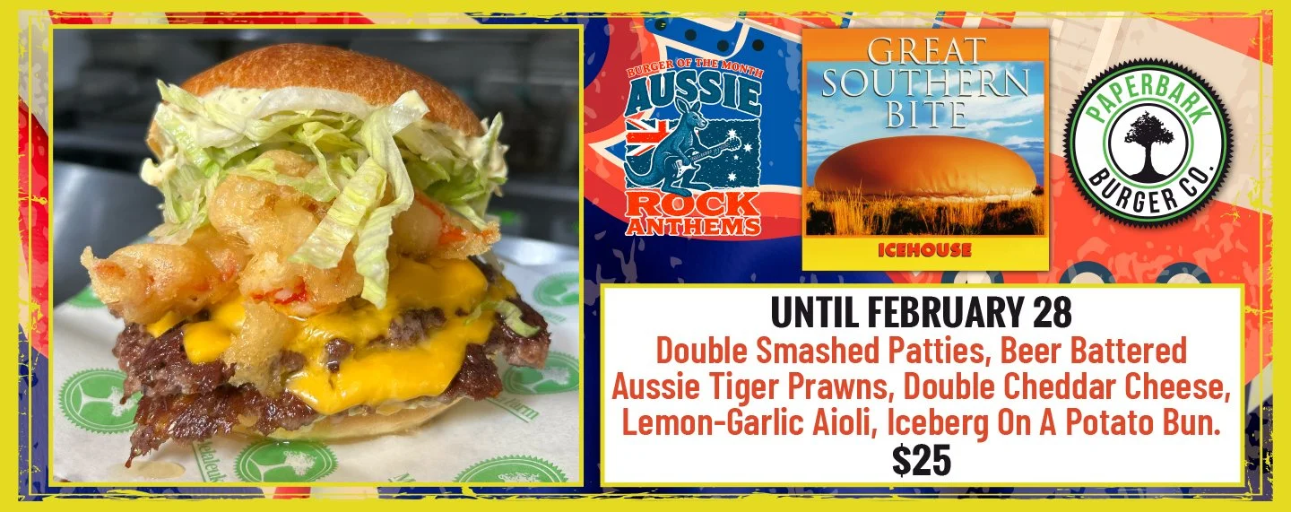 Try all 5 of the Aussie Anthem Series burgers and get the 6th (April) burger free on us!